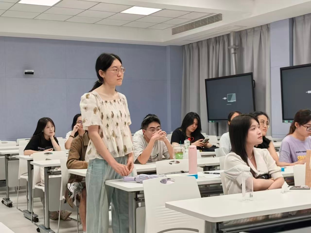 2023级公共管理学术型硕士闫志超聚焦“读研心态与关系处理”展开分享,结合自身经历从学习、生活、情感及师生关系四大方面给出“接地气”的建议。她倡导要有主动破局的学习态度、张弛有度的生活节奏与包容协作的人际理念。最后以“做一棵树,经风雨、再重建,向上生长,向下生根”的寄语,为新生筑牢研途心理基石。