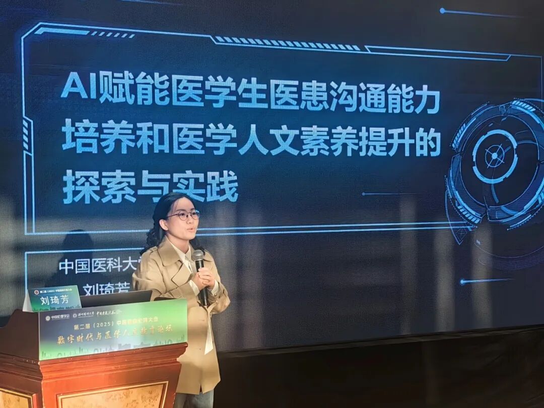 中国医科大学附属盛京医院副主任医师刘琦芳在《AI赋能医学生医患沟通能力培养和医学人文素养提升的探索与实践》为题,分享了“切问”AI医患沟通训练平台的研发背景、场景应用和实践成效。针对传统教学中实践资源不足、反馈滞后、尺度界限模糊等痛点,平台搭载AI专家评分系统,基于附属医院千例真实案例改编脚本,从问诊逻辑、共情能力等维度实时反馈,嵌入实习轮转后成效显著。她强调,技术不是替代教师的“对手”,而是放大人文示范的“扩音器”,需通过人机协同强化医患沟通的温度与质量,培养兼具技术能力与人文情怀的临床人才。