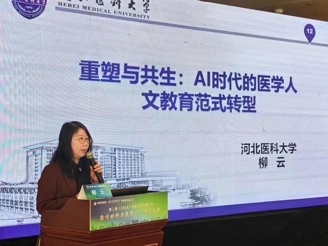 河北医科大学马克思主义学院常务副院长柳云教授作《重塑与共生:AI时代的医学人文教育范式转型》主题报告。她指出,AI在加速技术理性扩张的同时,可能会引发医生主体性消解、道德想象力萎缩等现象。临床中对于效率的追求也致使技术升级未能更多地辅助解决医患沟通问题。对此,她倡导构建人机共生教育新范式:将“分布式认知”纳入教学,培养既能驾驭AI又能审查算法偏见、敢于对AI说“不”的“算法管家”,并通过数字叙事、虚拟标准化病人等技术赋能教学,让人文素养转化为可训练、可评估的临床技能,推动技术回归“为人”的本源。