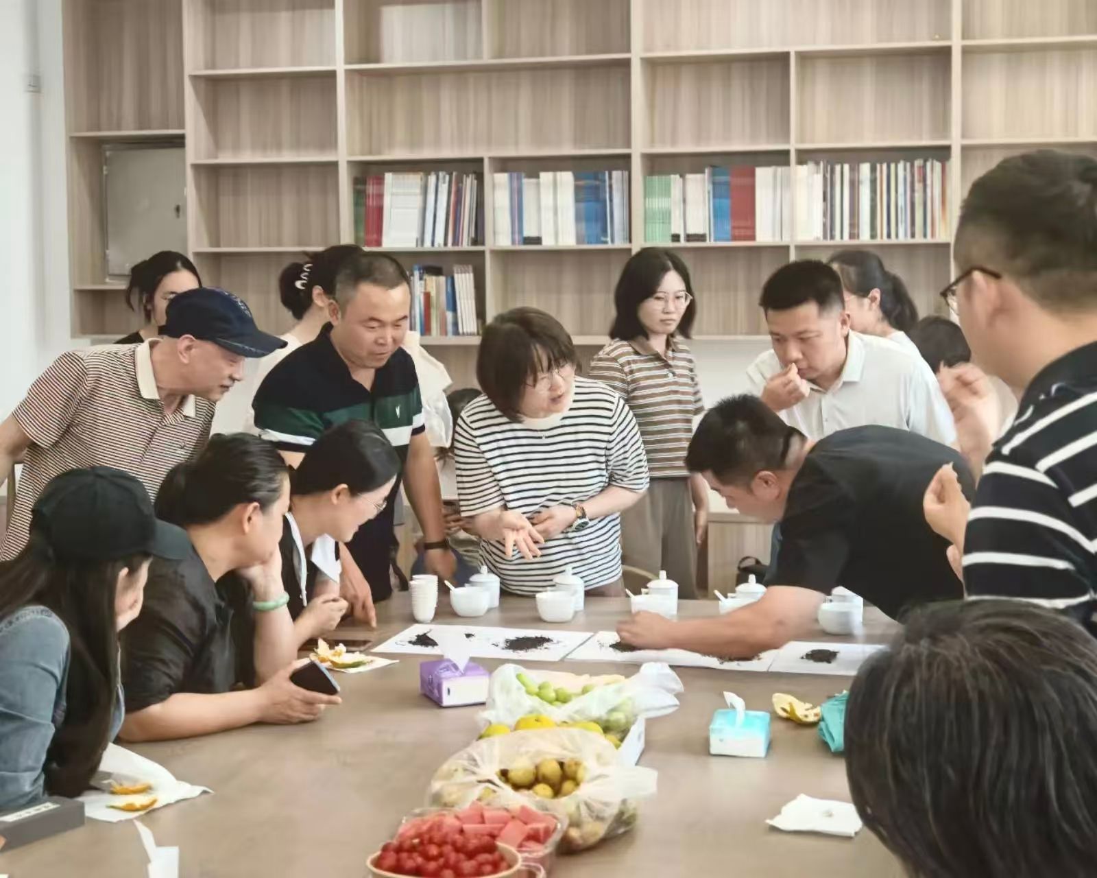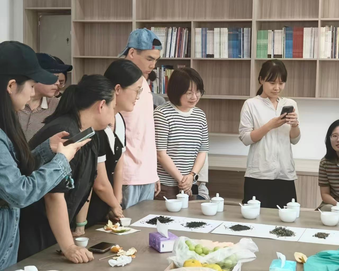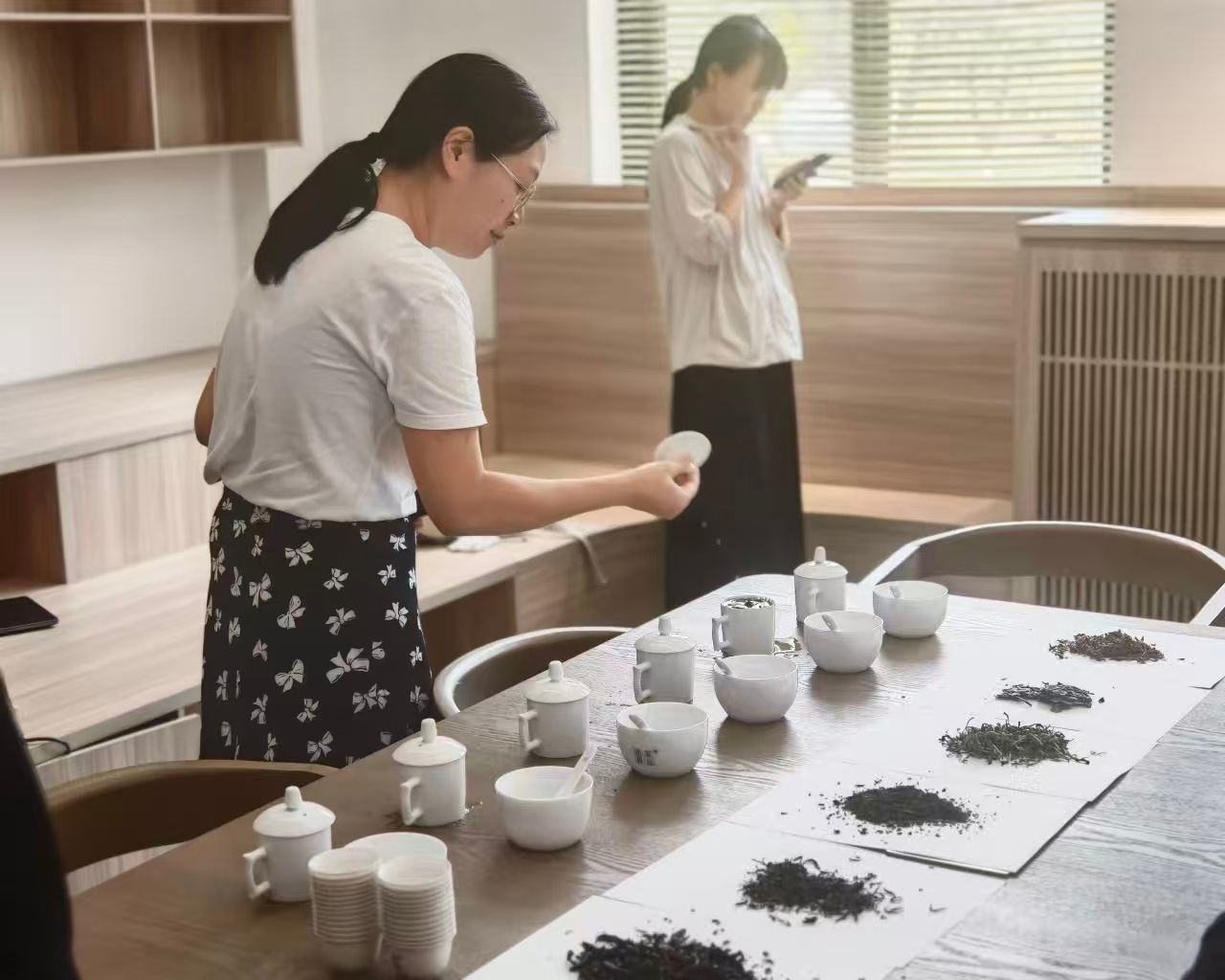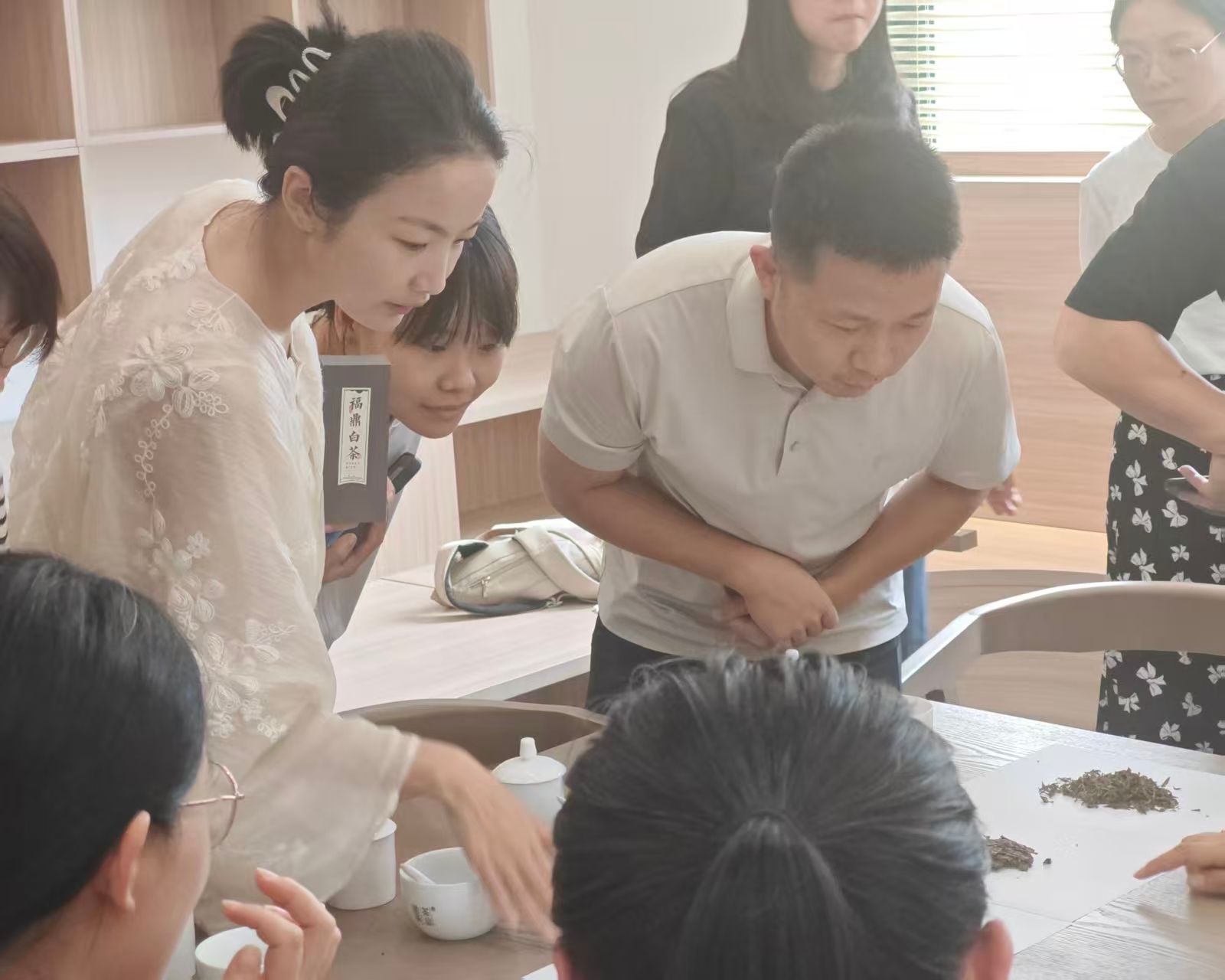 随后进入互动体验环节,现场气氛热烈高涨。学院提前准备了几种茶叶样品,胡老师引导老师们通过“看、闻、尝”三步辨别茶叶:观察茶叶的外形、色泽,感受不同茶类的形态差异;凑近闻嗅干茶与湿茶的香气,甄别不同茶叶的独特风味;最后细细品茶,品味茶汤的甘醇、苦涩与回甘,亲身感受茶文化的魅力。老师们积极参与,相互交流心得,在实践中加深了对茶叶的了解。