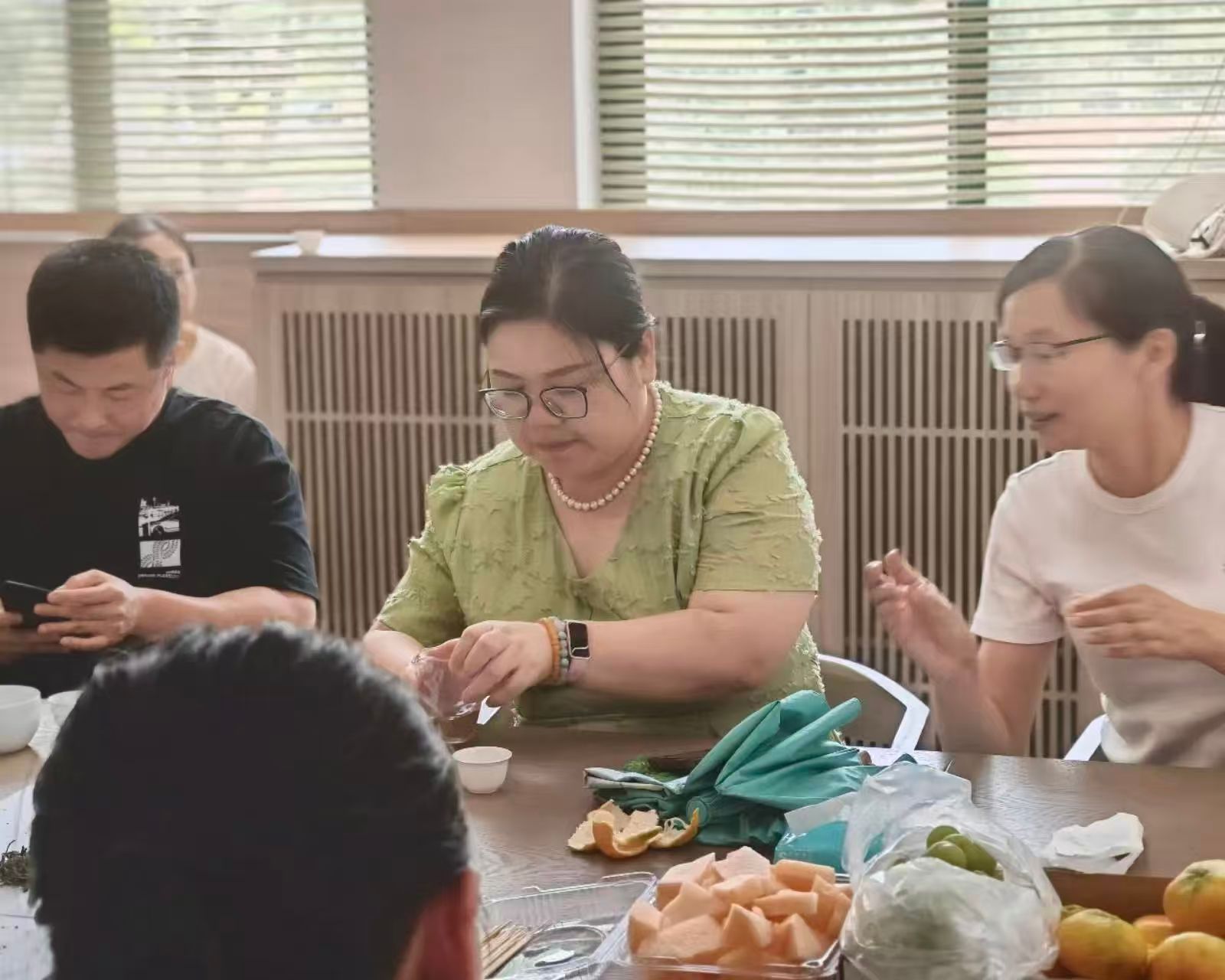 活动伊始,胡茜茜老师以茶为媒,开启了精彩的茶文化分享。她围绕茶叶品种展开讲解,重点介绍了平阳黄汤茶的历史渊源与独特风味,同时延伸普及了绿茶、红茶等常见茶类的区分要点。在茶叶保存环节,胡老师结合实际经验,分享了“避光、防潮、密封、低温”等保存方法,解决了老师们日常存茶的困扰。此外,她还从科学角度解读了不同品种茶叶的功效,如提神醒脑、促进消化等,建议老师们选择适合自己的茶,让老师们对饮茶健康有了更全面的认知。